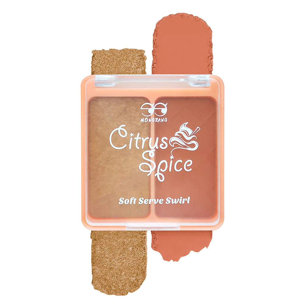 Mongrang Soft Serve Swirl Eyeshadow 6g #Citrus Spice Add a pop of color to your eyes with this Citrus Spice eyeshadow palette that combines the sweet and sour notes of peach and the softness of cinnamon brown for a natural look. It's soft and smooth, blends easily, and doesn't smudge. The color payoff is intense from the first swipe, with a light shimmer that makes your eyes sparkle with dimension. Perfect for a bright, everyday look, this long-lasting eyeshadow won't come off easily. It's easy to use, and it enhances your eyes for a naturally fresh look. It comes in a cute ice cream cone package in a sweet, peachy orange color that's sure to catch anyone's eye. Perfect for both personal use and as a super cute gift!
