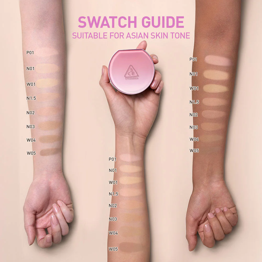 3CE Fitting Mesh Cover Cushion 11g #W05 A lightweight cushion that is comfortable on the skin, long-lasting, and doesn't drop, giving a soft matte finish with Mesh Cushion technology that helps filter the right amount of cushion to apply to the skin. Combined with the power of 3CE Super Pearl, a pearl tone-up that helps adjust skin tone to be even, look bright, and cover dull skin. With ingredients from Hyaluronic and Panthenol, it helps nourish the skin to be moisturized, giving you smooth, beautiful skin that shines like a pearl.