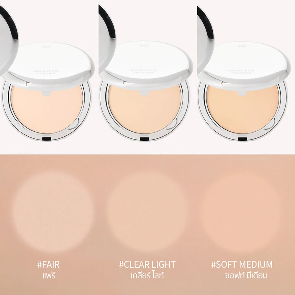 3CE Makeup Fix Powder 9g #Fair Compact powder, light texture, long-lasting, helps set makeup and absorb excess oil while maintaining skin moisture, giving smooth, beautiful, bright, natural-looking skin. Comes with a puff and mirror, easy to carry.