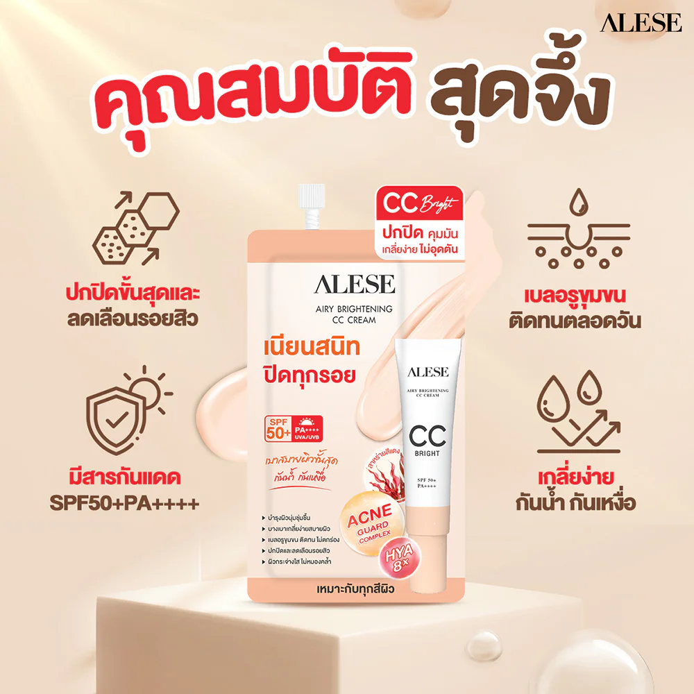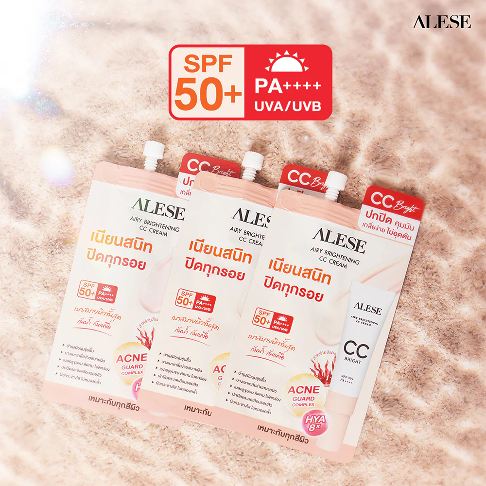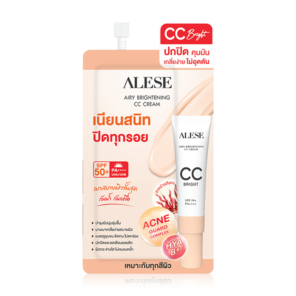 ALESE Airy Brightening CC Cream 4g CC cream, light texture, easy to spread, does not fall into grooves, controls oil, does not clog the skin, helps adjust skin tone to be smooth, bright and conceals dark spots with Light Diffusion technology, and protects the skin from sunlight, revealing smooth, clear skin that is not afraid of light.