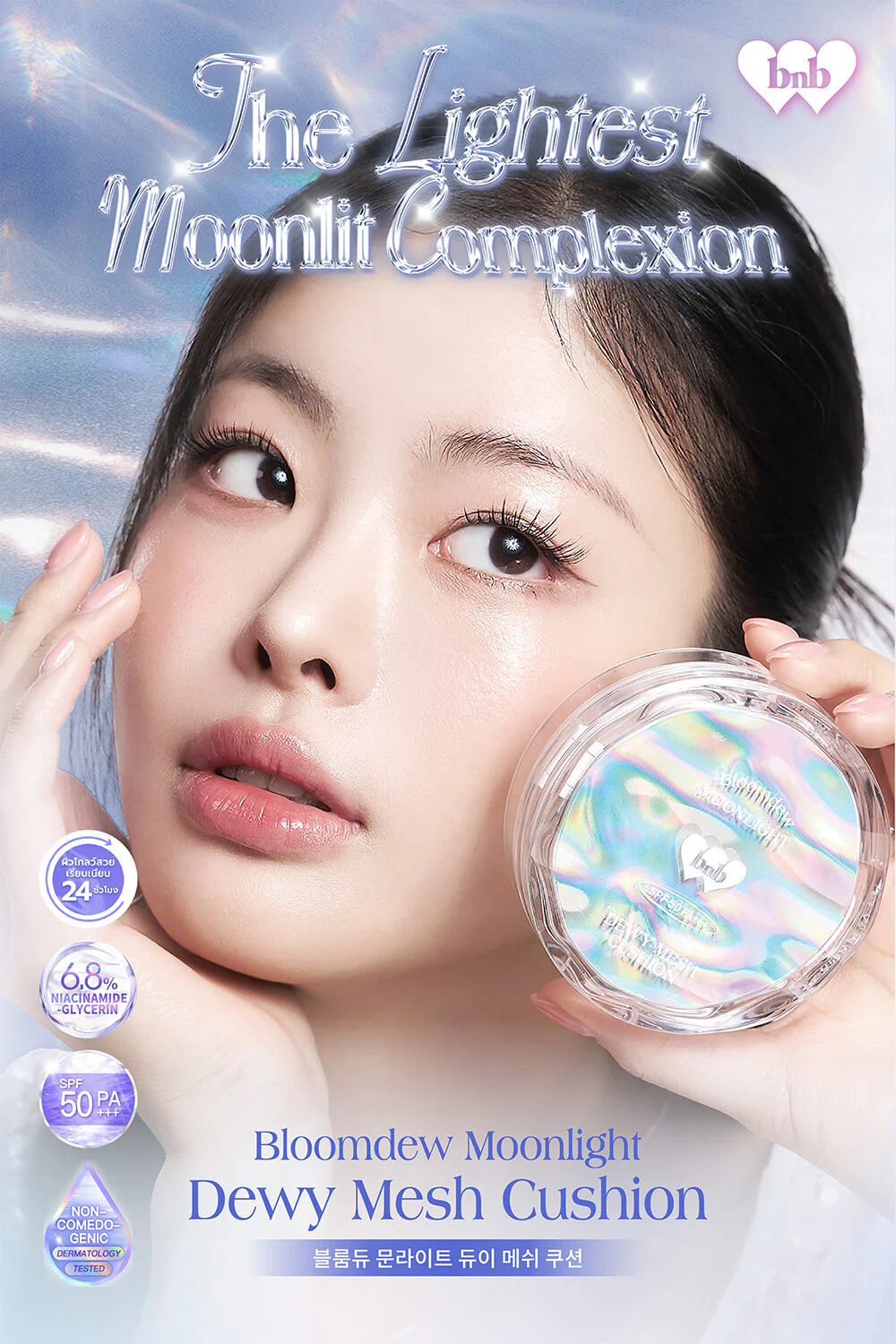 barenbliss Bloomdew Moonlight Dewy Mesh Cushion 15g #FN1 Aster A lightweight cushion that feels comfortable on the skin but provides high coverage. Combined with Moonstone® Glow Effect and Miracle Bloom™ Essence technology, it helps blur the skin for a smooth finish. Enriched with 2% Niacinamide and 4.8% Glycerin, it helps control excess oil and moisturizes the skin while protecting the skin from the sun. It gives the skin a smooth, beautiful, glowing finish that looks natural.