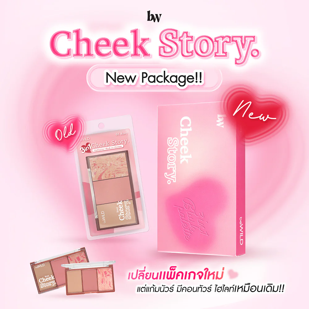 beWiLD Cheek Story 10g #01 Rosy 3in1 cheek makeup product with highlighter, blush, contour all in one compact. Smooth texture, beautiful, soft colors, long-lasting all day. Give your cheeks and face a beautiful, perfect dimension. Can be used for many makeup looks, for every occasion.