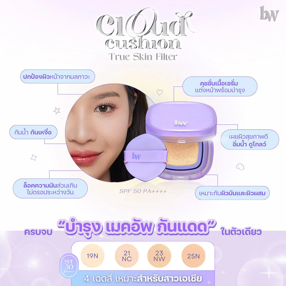 beWiLD Cloud Cushion 12g #19N Natural Semi-Glow cushion, soft and smooth, light on the skin, waterproof, sweatproof, not greasy, color does not drop during the day, long-lasting, combined with X8 Hya, Jeju Maxma Sea Water and Plankton Extract, helps blur pores, redness and dark spots, with Pollution Block technology to protect the skin from UV rays and various pollutants, giving you smooth, beautiful, radiant skin, confident all day long.