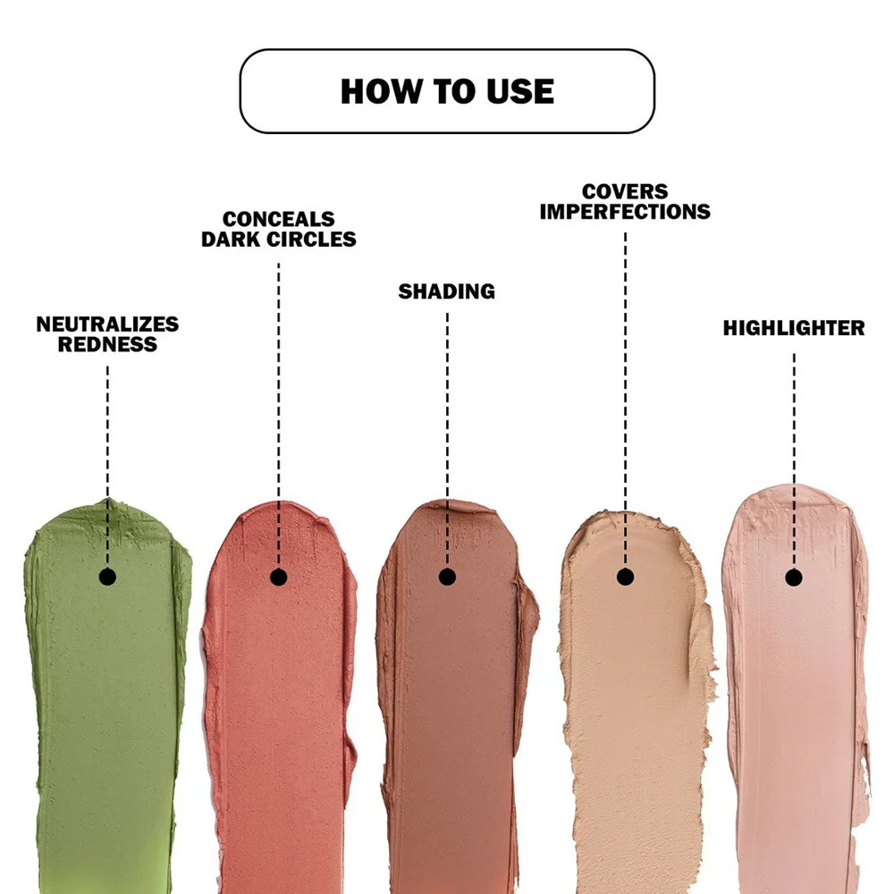 • Flesh tone: Used to conceal various imperfections on the face.