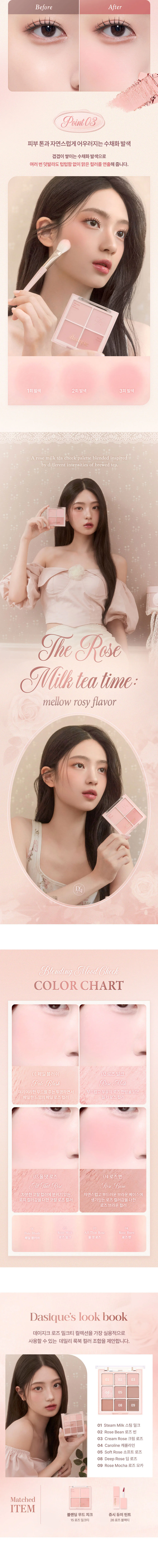 Dasique Blending Mood Cheek 9g #15 Rose Milk Tea4-shade blush palette, Rose Milk Tea collection, in a soft rose milk tea pink tone, as if extracted from rose petals in smooth milk tea.