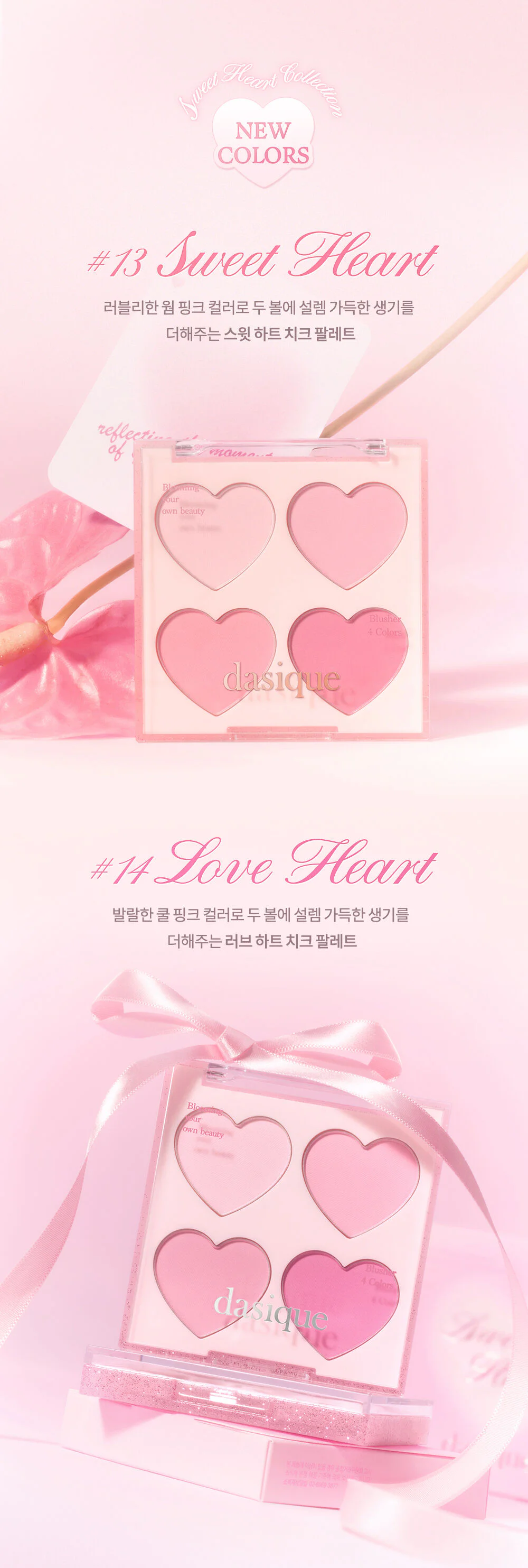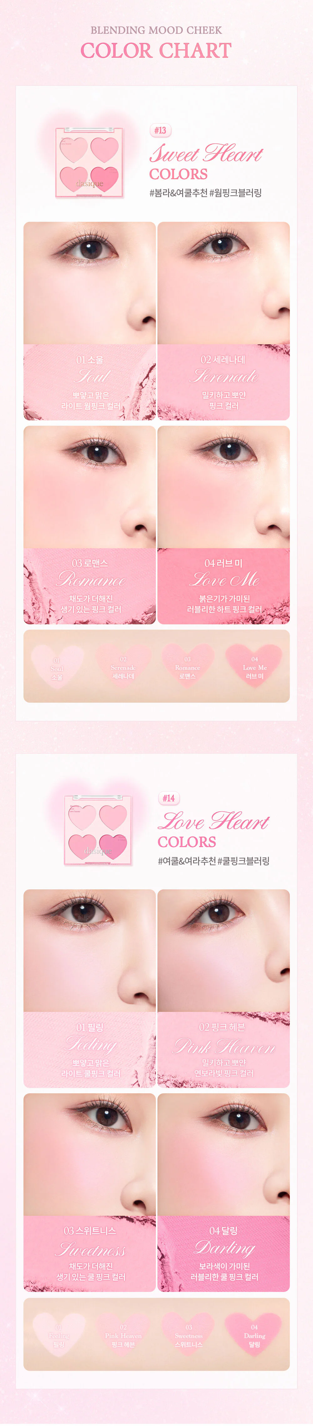 Dasique Blending Mood Cheek 9g #13 Sweet Heart 4-shade blush palette, Sweet Heart collection, creates a cute mood with excited pink hearts that sway. Mix and match freely to create a colorful makeup look with a smooth formula.Consistent Does not clump