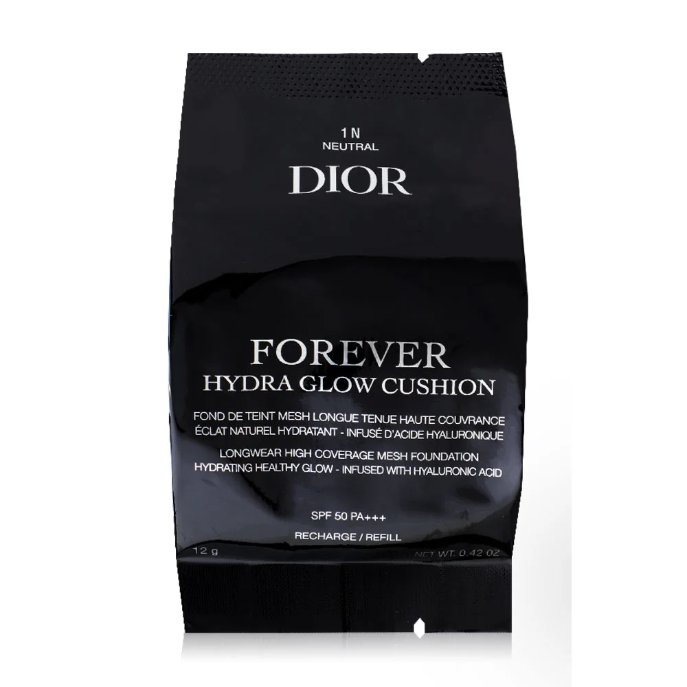Dior Forever Hydra Glow Cushion 12g #1N Neutral Hydra Glow Refill Cushion Foundation combines hyaluronic acid with mesh technology to provide perfect coverage and a natural glow. Specially developed for Asian skin, it helps conceal blemishes, smooth skin tone and increase long-lasting radiance. Transform dull skin into healthy-looking skin with SPF 50 PA+++ protects skin from UV rays. Suitable for everyday use and portable to use anywhere.