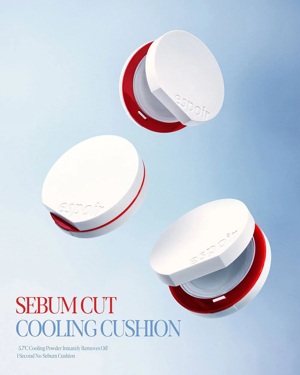 ESPOIR Be Velvet Sebum Cut Cooling Cushion 16g Refresh your makeup like you've just applied it with this cooling cushion formula. It effectively absorbs excess oil and provides a cool, refreshing sensation to your skin. It also adds moisture, leaving your skin looking velvety matte without drying or flaking.