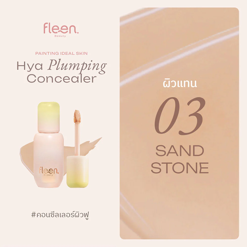 Fleen Beauty Hya Plumping Concealer 3g #03 Sand Stone This concealer has a silky, smooth texture that blends easily and adheres perfectly to the skin without settling into lines. It's waterproof and sweatproof, and lasts all day long. Formulated with innovative Hyaluronic Filling Sphere, it helps conceal wrinkles and dark circles, while adding moisture to the skin for a flawless, full-looking finish.