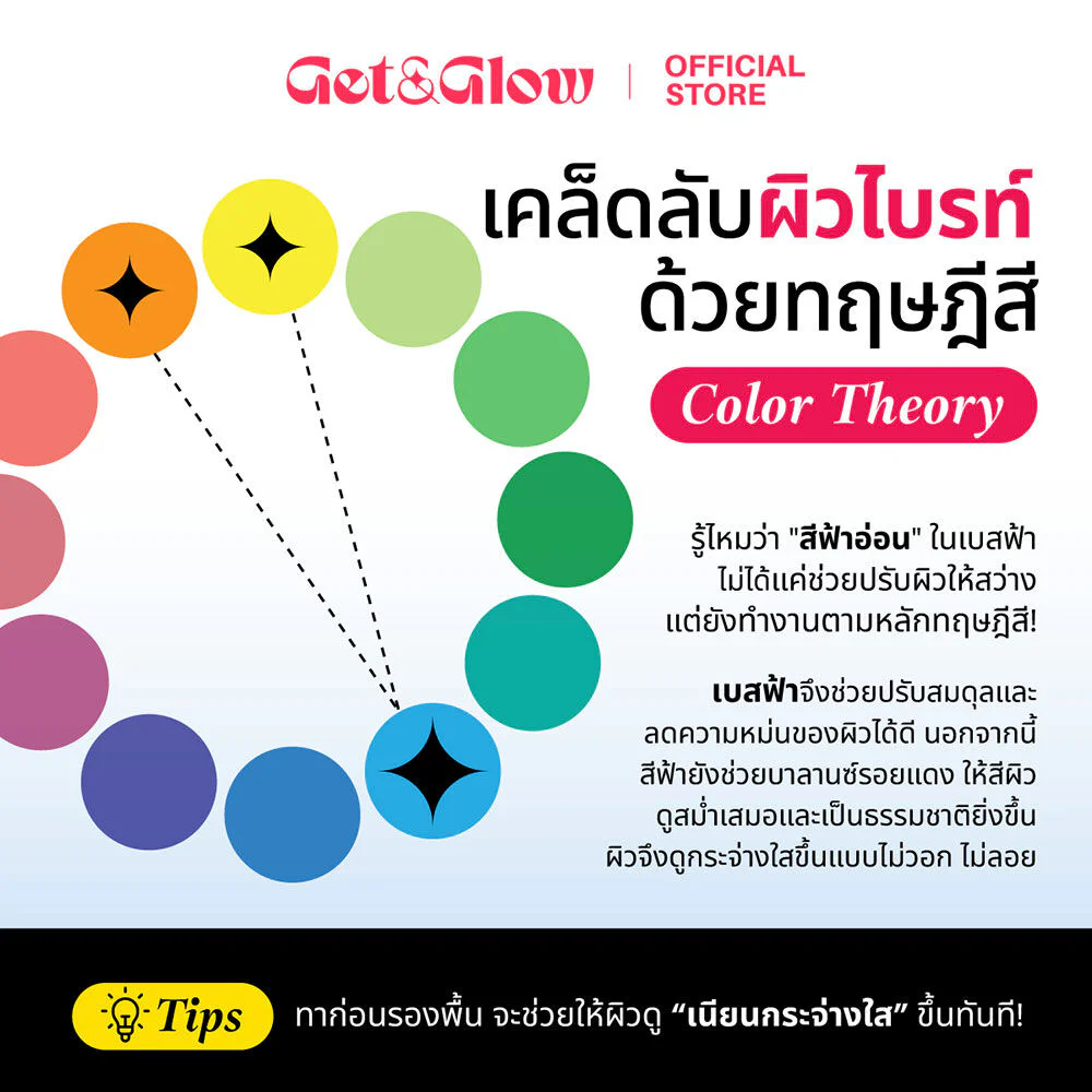 Get&Glow Second Skin Makeup Base Sachet 5ml #Blue A lightweight, blue-textured makeup base that transforms your skin to appear bright, even, and smooth while maintaining the "real skin" look. This product utilizes Second Skin technology, developed to naturally adhere to the skin, blurring pores and fine lines, and enhancing makeup's long-lasting wear throughout the day.
