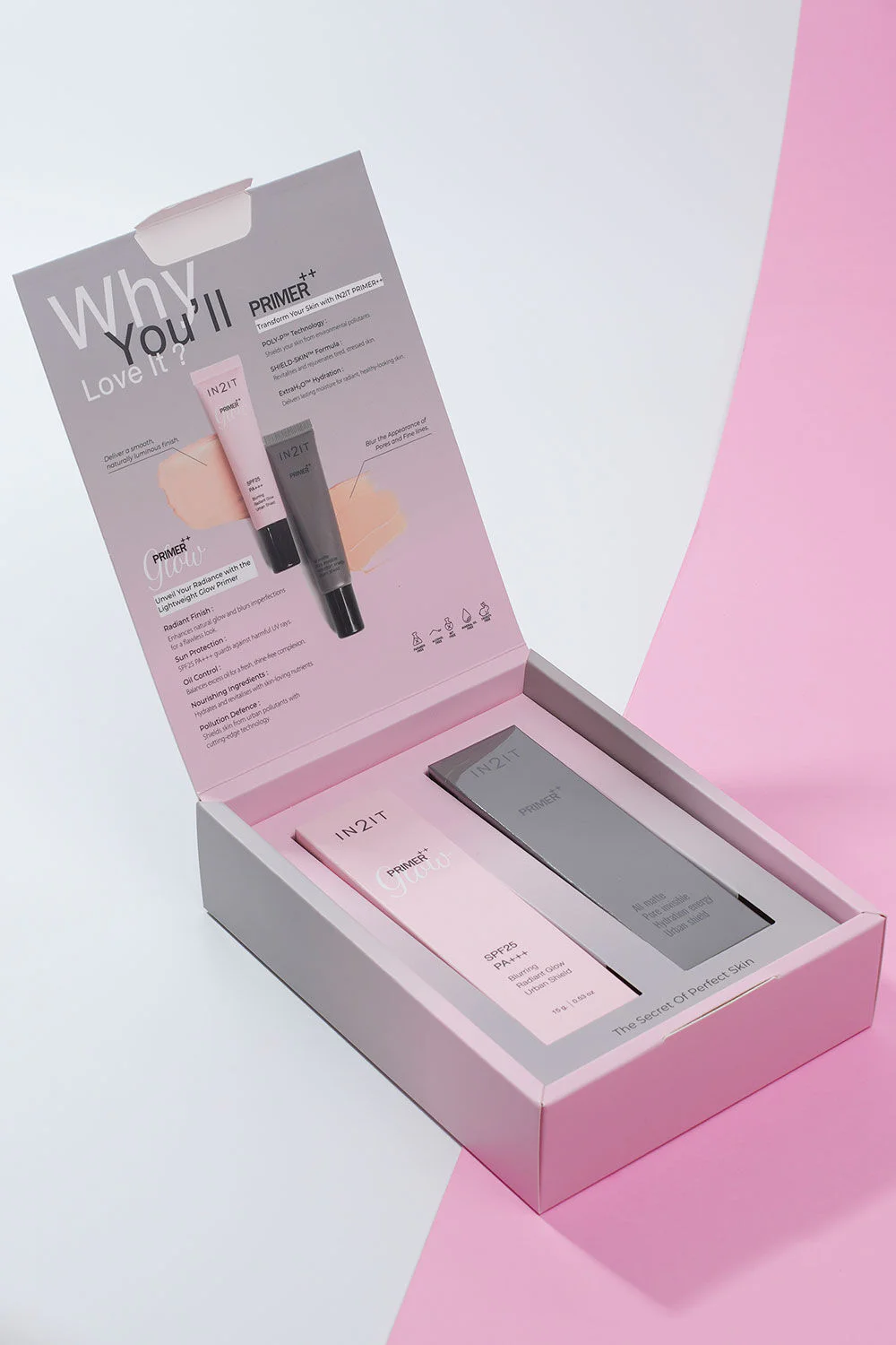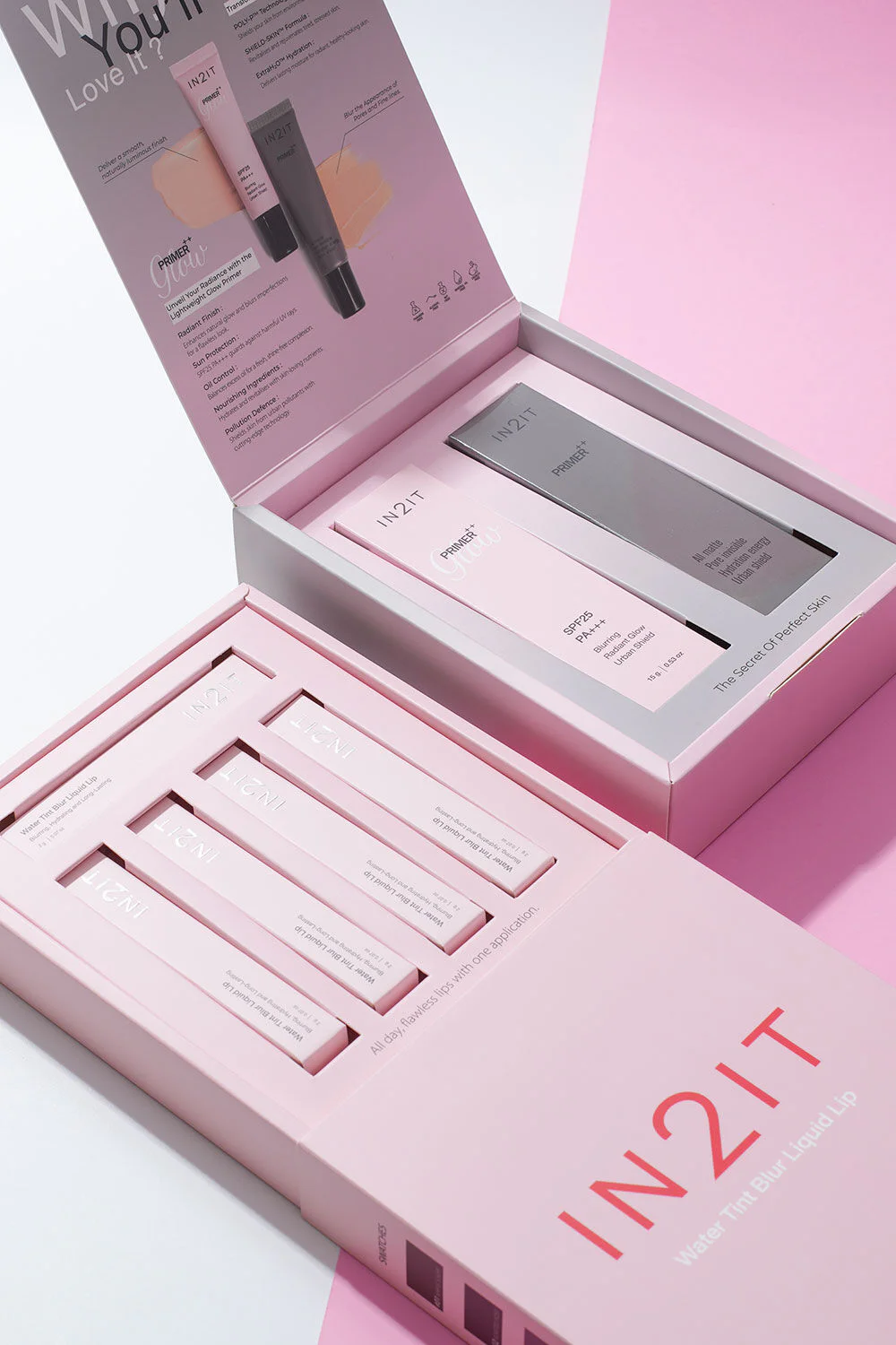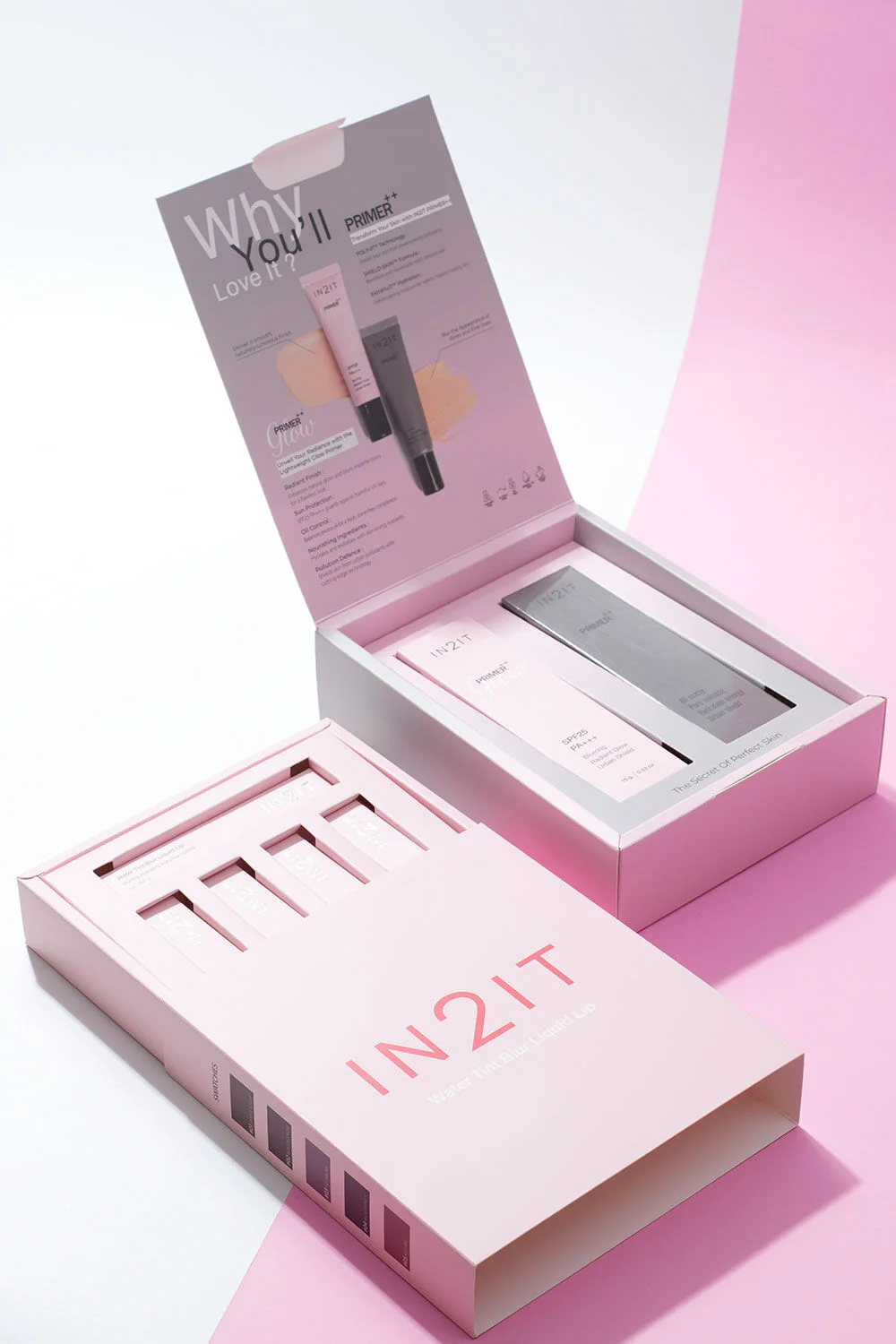 In2It Primer++ Box Set A skin care primer set that helps blur skin and pores for a smooth, radiant face, and helps makeup last all day long. It also combines nourishing ingredients that help moisturize the skin, revealing smooth, beautiful, hydrated, and healthy skin.