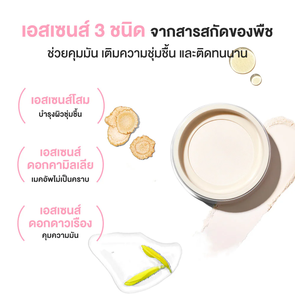 JUDYDOLL Blurring Loose Powder 12g Long-lasting, comfortable on the skin, chills for a long time with translucent loose powder that controls oil for a long time. The texture is light and comfortable on the skin with 3 types of plant extract essences: ginseng to moisturize the skin, camellia flower to lock makeup in place without stains. and marigold flowers help control oiliness Doesn't make makeup runny.