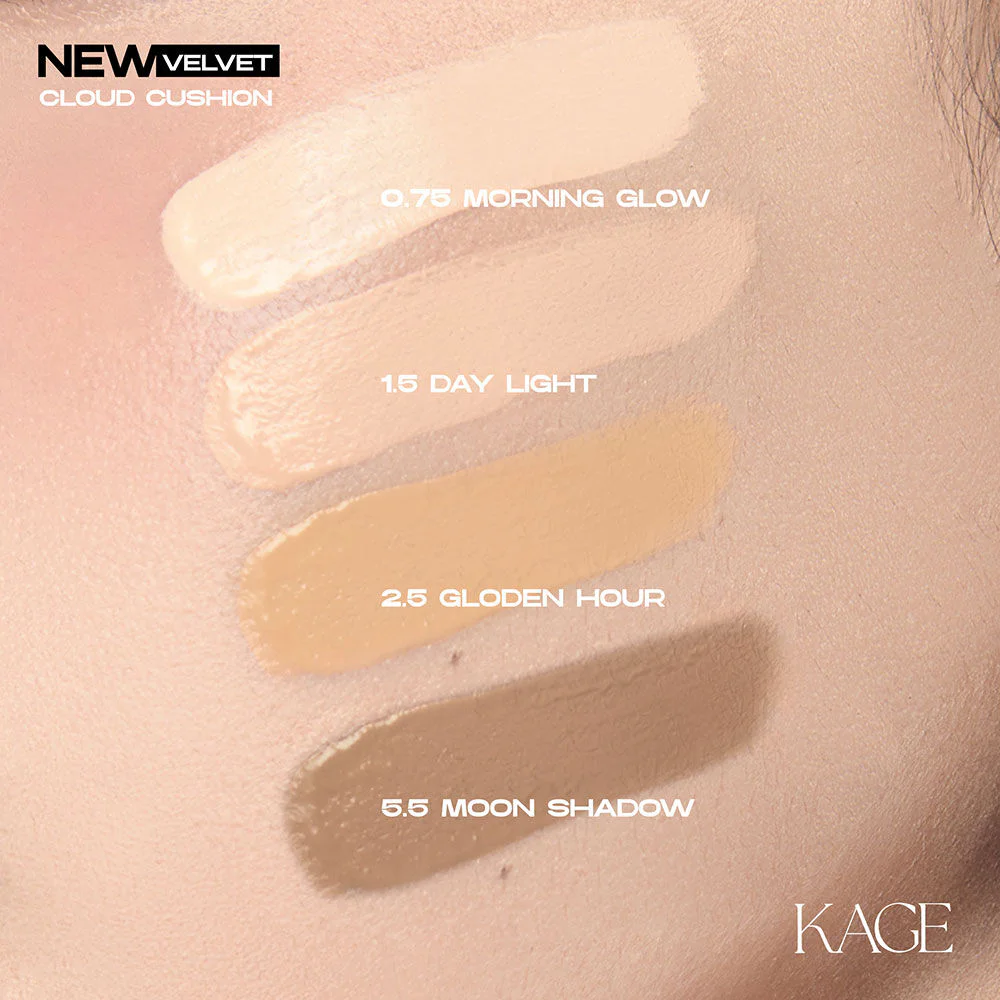 KAGE Velvet Cloud Cushion SPF50 PA+++ 15g #0.75 Morning Glow This lightweight cushion is easy to blend and helps even out skin tone for a natural, smooth finish. It can be reapplied throughout the day without leaving any residue.