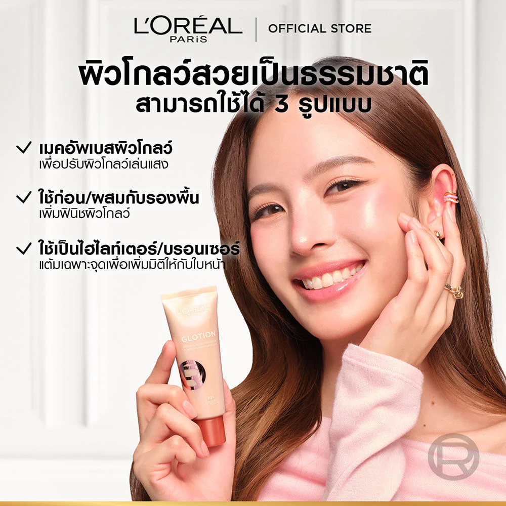 Loreal Paris Lumi Glotion 40ml #902 Light Glow Makeup base with a light texture that feels comfortable on the skin. With the value of Shea Butter and Glycerin extracts, it helps nourish the skin for long-lasting moisture. It also combines Luminous Pearl to help adjust the skin to glow beautifully, reflect light, and look natural.