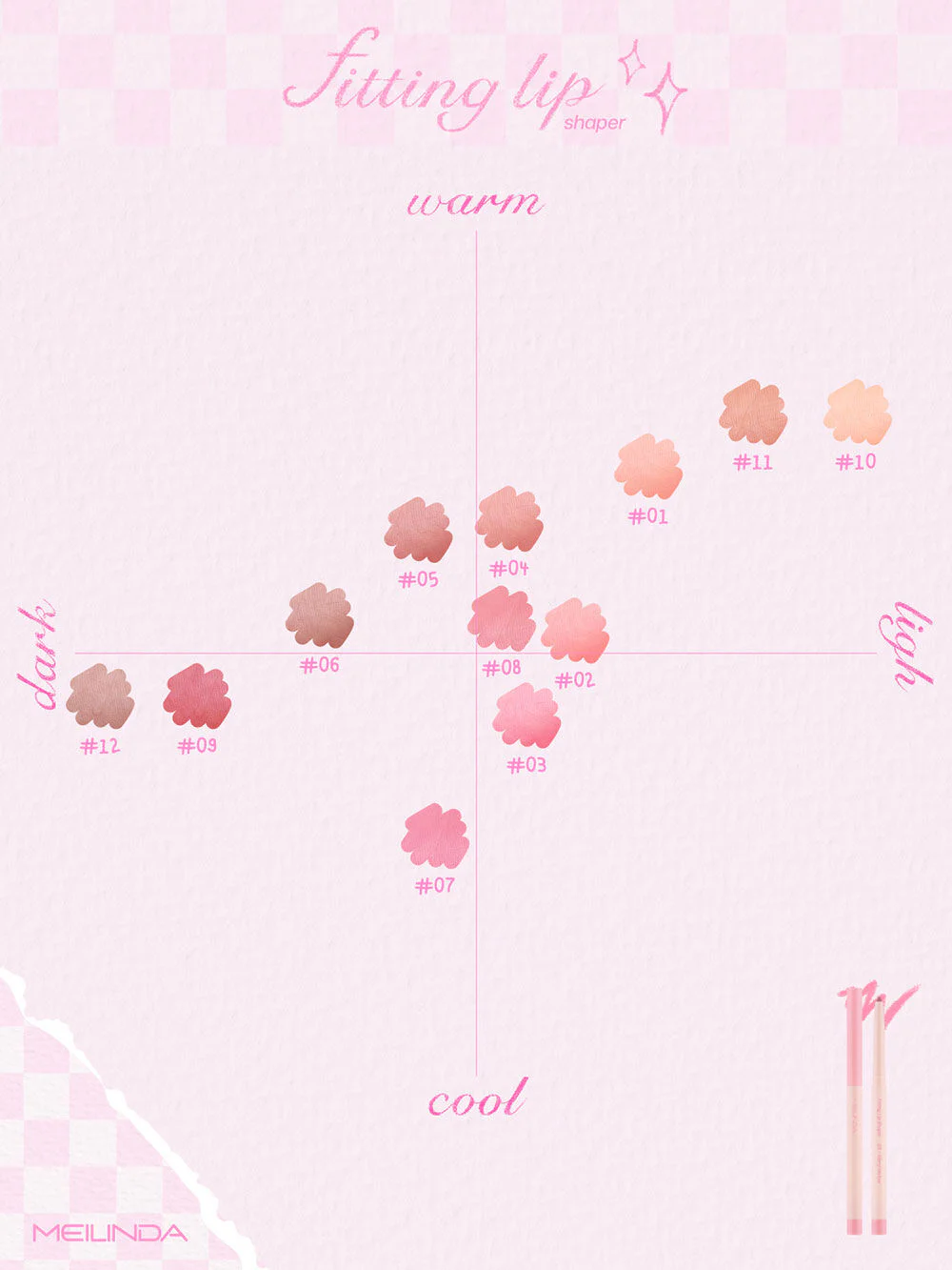 Mei Linda Fitting Lip Shaper 0.28g #07 Cool Pink #Blurred lip edges. This soft, long-lasting, waterproof lip liner pencil gives your lips the full, shapely look you desire. It can be used with lipstick for longer wear, with a glossy lipstick to add dimension to your lips, or to blur the edges of your lips for a more beautiful, soft, and hazy finish.