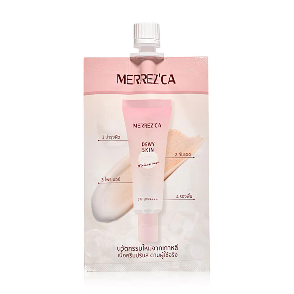 Merrez'ca Dewy Skin Makeup Base Sachet 5g 4in1 foundation base in a convenient, portable sachet, combining skincare such as foundation, primer, and sunscreen. Smooth texture, easy to spread, helps conceal blemishes to be smooth and flawless. Ready to adjust and control skin tone to be consistent Nourish the skin to be firm, bright, clear and protect the skin from the sun with SPF50/PA+++