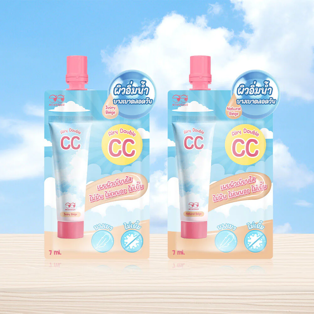 Mongrang Airy Double CC Cream 7g #Ivory Beige CC cream, light texture, easy to spread, controls oiliness, is not sticky, does not clog the skin, helps cover the skin to be smooth and adjust the skin tone to be even and natural, giving smooth, beautiful, radiant skin that looks bright.