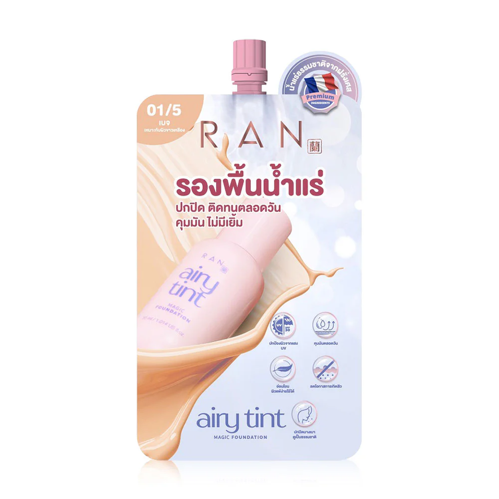 RAN COSMETIC Airy Tint Magic Foundation 6g #01/5 Matte foundation, long-lasting, light texture, mixed with UV Filter sunscreen & Rosebay Willow Herb and innovative natural substances with effective coverage, oil control, like putting on a filter to make your face look natural with Marine Extract and French Mineral Sea Water to help nourish your skin to be radiant, smooth, beautiful, no stains, beautiful skin from every angle, protect your skin from the sun with SPF30 PA + +