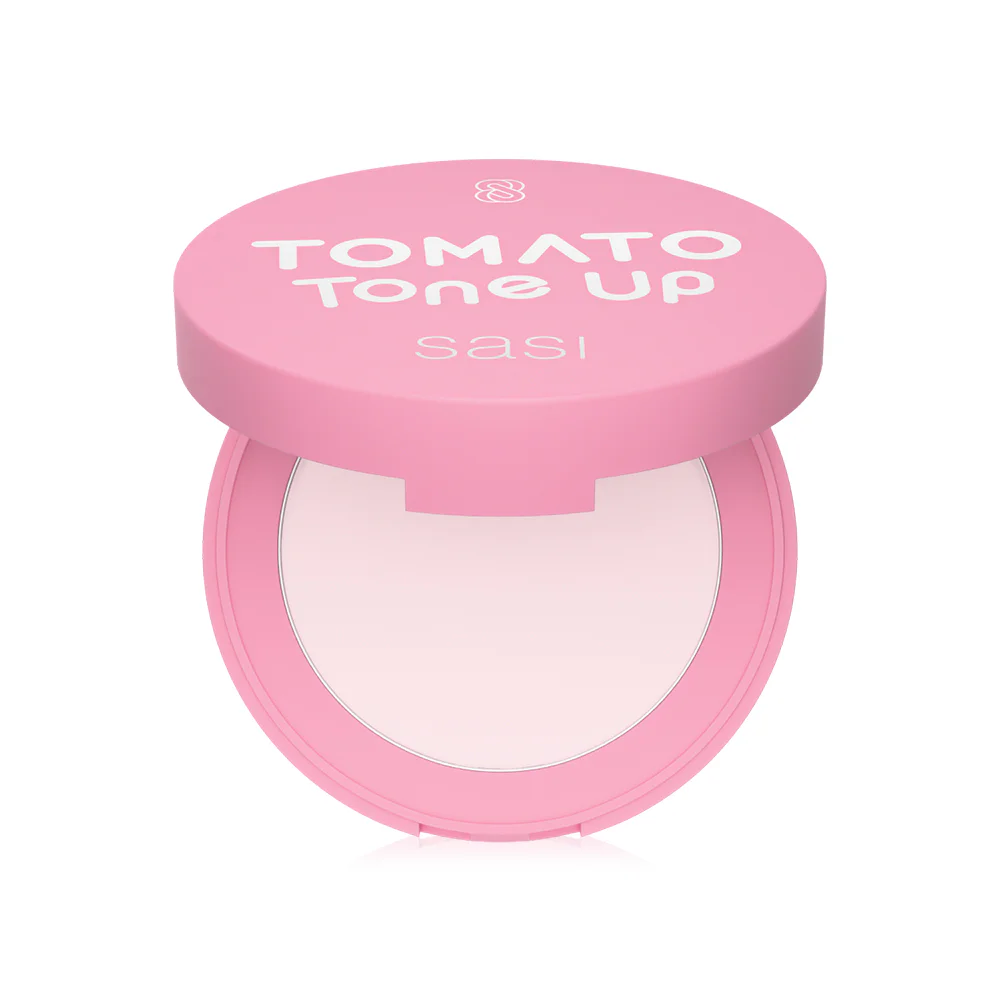 SASI Tomato Tone Up Compact Powder 4.5g This tone-up pressed powder is a fine, pink powder that helps brighten and illuminate the skin, giving it a natural pinkish hue. It prevents dullness with Pink Aura Effect technology. The powder is long-lasting, waterproof, sweat-proof, and smudge-proof, and helps absorb oil while controlling shine for a long time. Soft-Focus Effect technology helps blur pores for smoother skin and conceals blemishes. It's enriched with tomato-derived nutrients like Lycopene, Vitamin A, and C, which help with antioxidants, leaving skin looking youthful, radiant, and healthy.