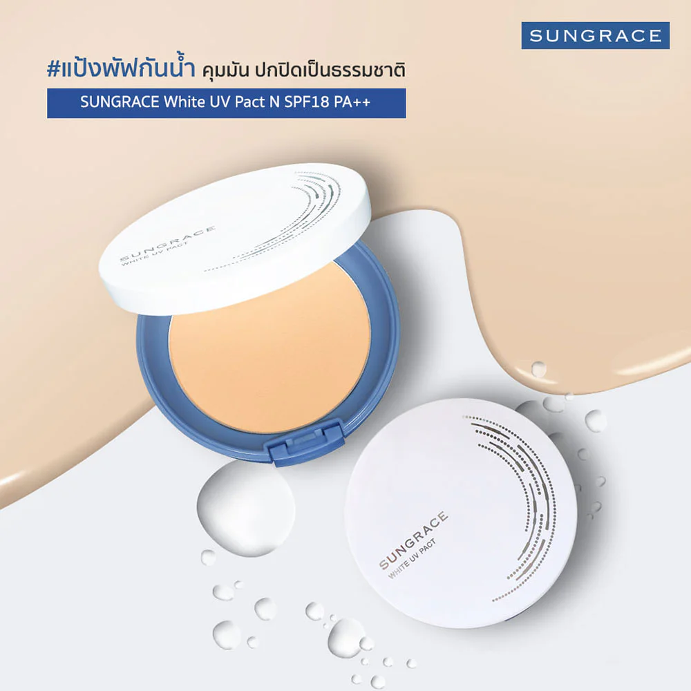 SUNGRACE White UV Pact N SPF18 PA++ 12g #N2 Foundation powder puff with a fine, smooth texture that blends with the skin. Helps conceal dark spots and dullness naturally. Feels light, not heavy on the face. Makes the skin look smooth, bright. With Silky Fitting Powder ingredients that are resistant to water and sweat, the powder lasts long and does not come off during the day.