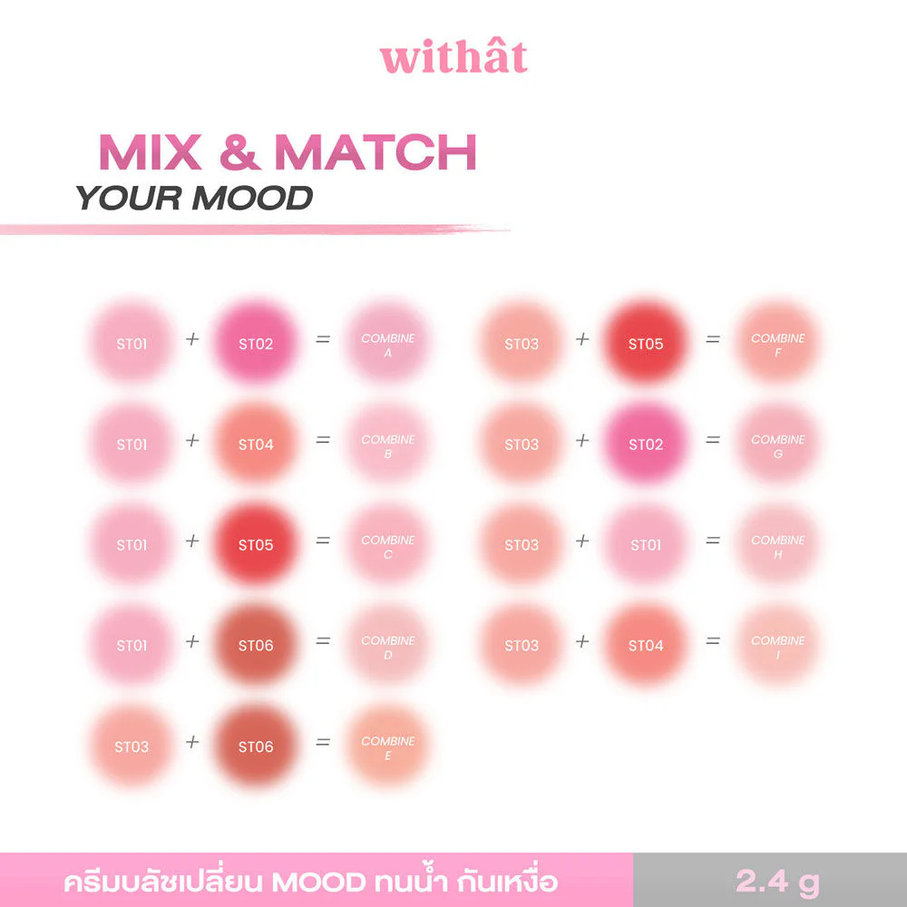 This waterproof, sweat-proof cream blush offers a soft, beautiful color tone that adds a touch of color to your cheeks, making makeup more fun because Witthat believes that every shade is a feeling that tells your story each day.