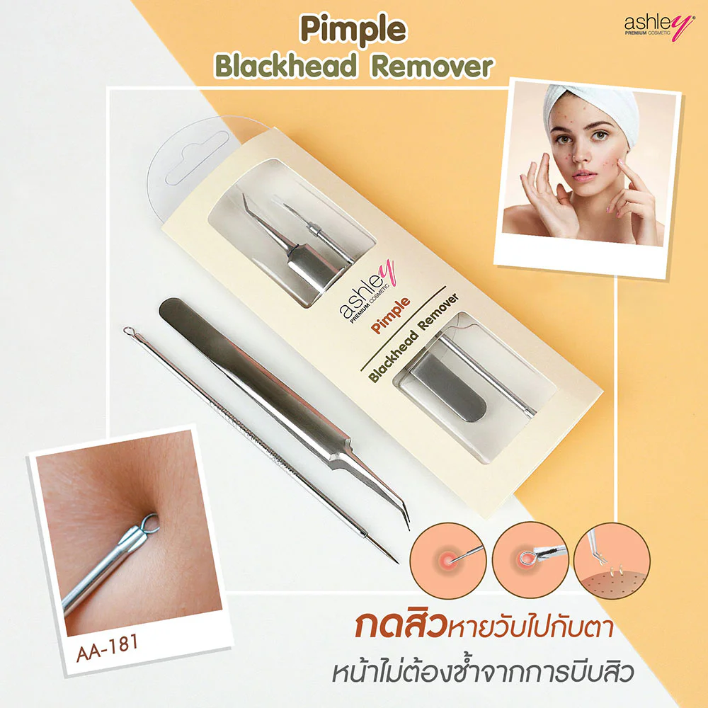 Ashley Pimple Blackhead Remover Set 2 Items Acne pressing device set It can be used with all types of acne. Press the acne head out easily. Reduce bruising from general squeezing.