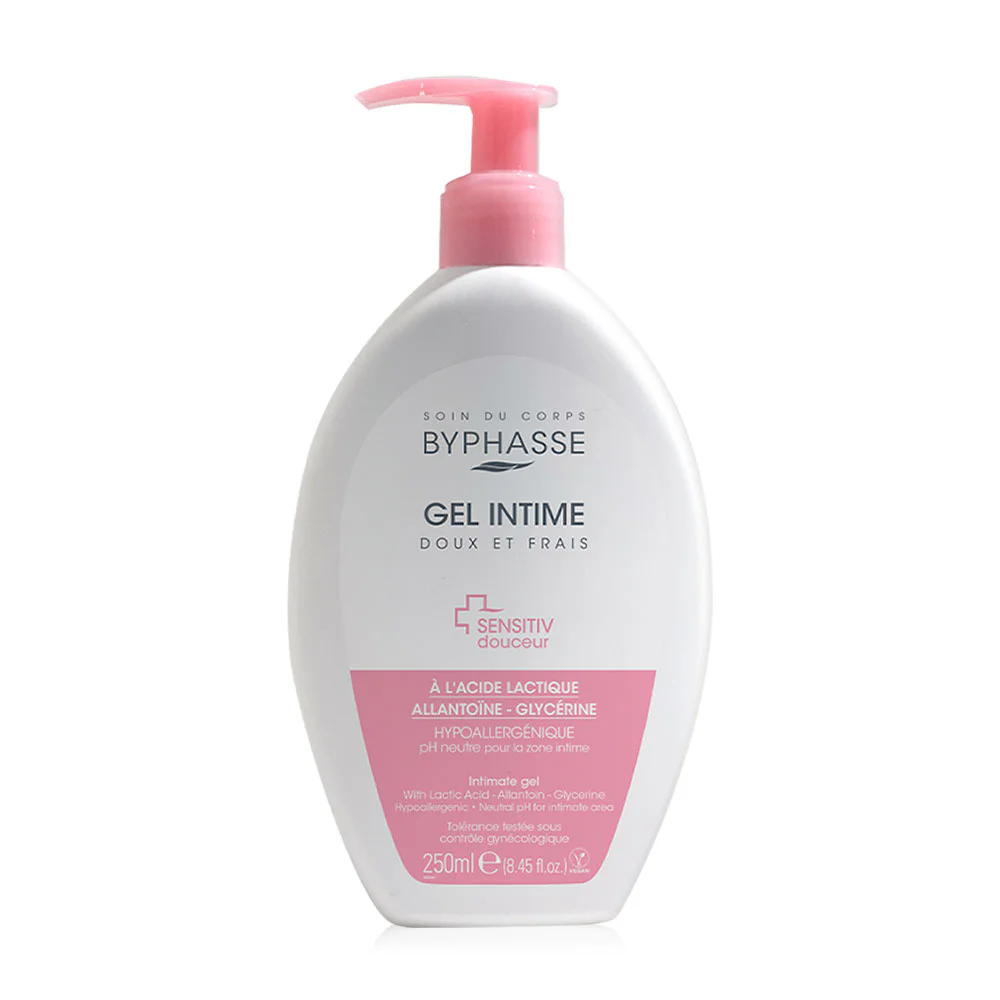 BYPHASSE Sensitive Douceur Intimate Gel 250ml A gentle formula feminine cleansing gel specially developed for women's intimate hygiene. Formulated with Glycerin and Allantoin for daily softness and protection. A gentle cleansing base based on the physiological pH of the vagina. Enriched with Lactic Acid, it helps balance the vaginal area, taking into account the fragility of the vagina for daily use.