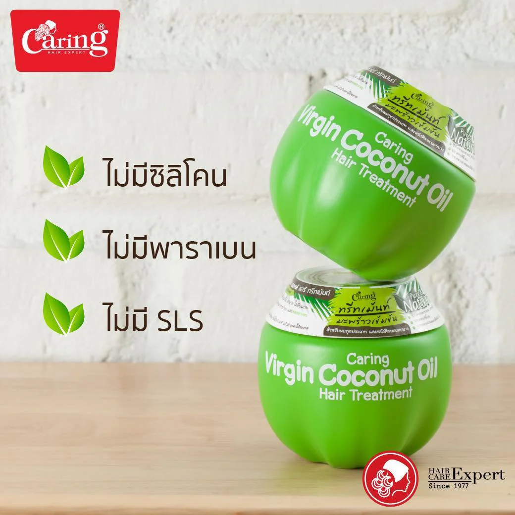 Caring Virgin Coconut Oil Hair Treatment 230g hair treatment With the value of cold-pressed virgin coconut oil, concentrated Nourish dry and damaged hair, split ends to be healthy, soft, smooth, shiny, not flat, safe, reduce the chance of hair loss. beautiful hair not flat No, it's fast during the day.