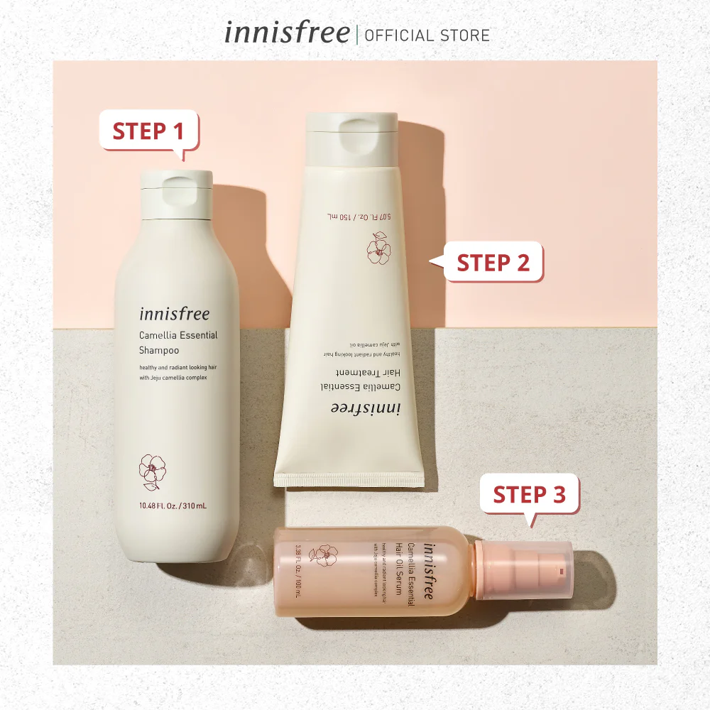 Innisfree Hair Recipe Essential Oil Serum 100ml Hair care oil enriched with camellia extract nourishes dry and damaged hair, making it shiny and soft.