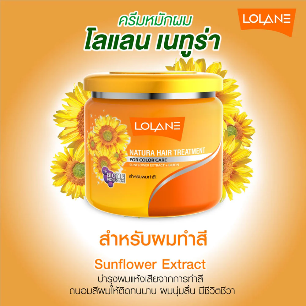 Lolane Natura Hair Treatment For Color Care 250g Hair treatment formula for colored hair with MMI System technology, combined with Sunflower Extract, helps restore hair from coloring and locks in color for a long time. With the value of Biotin Nourish, it helps reduce hair breakage, leaving hair smooth, soft, and healthy.
