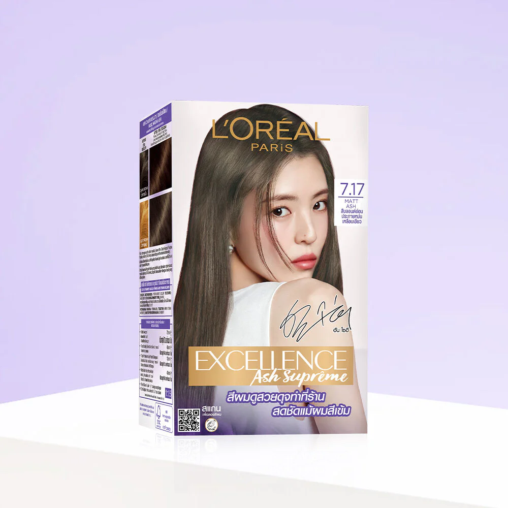 Loreal Paris Excellence Ash Supreme 172ml #7.17 Matt Ash Permanent hair color cream that is superior with Hi-Shine Complex technology, creating beautiful, clear, long-lasting hair color, shiny and lively with Triple Care hair protection formula with 3 effective ingredients to protect and restore hair with ceramides, amino acids and collagen for healthy hair, full and beautiful for a long time with a soft and smooth touch like silk with a hair protection formula, prevents damaged hair and has ingredients that help restore and nourish hair both before and after coloring for beautiful, healthy hair with a soft and smooth touch like silk.