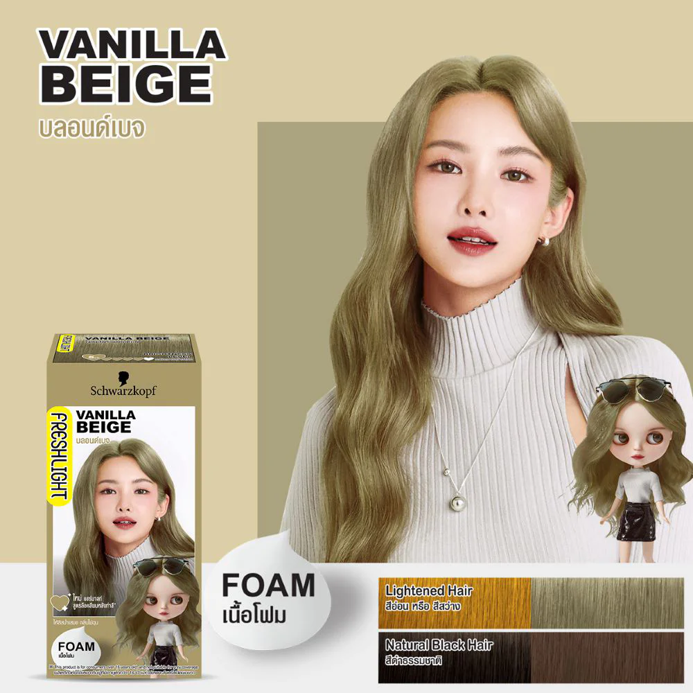 Schwarzkopf Fresh Light Foam 105g #Vanilla Beige Hair color foam Freshlight, beige blonde  Comes in foam form that will make dyeing your hair the way you want fun and easier to do yourself. The soft and delicate foam texture helps to apply color thoroughly, giving you beautiful, shiny hair without damaging your hair. It also nourishes with a hair mask formula that locks in color, providing moisture to protect hair from coloring and deeply nourishing the hair for beautiful, shiny hair. Locks in hair color for longer lasting color. Freshlight foam formula comes in a bottle with a pump cap for easier and more convenient use, allowing you to have fun with the foam that is pressed out and applied to your head thoroughly like shampooing.