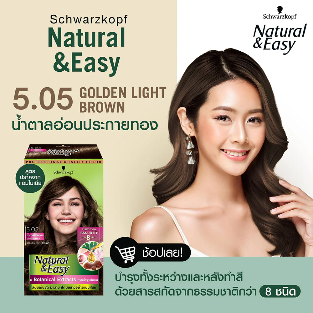 Schwarzkopf Natural & Easy 170ml #5.05 Golden Light BrownAmmonia-free hair color cream for covering gray hair, covers gray hair smoothly like natural hair color. Special formula with Natural Color technology helps the hair color look natural, healthy and shiny.