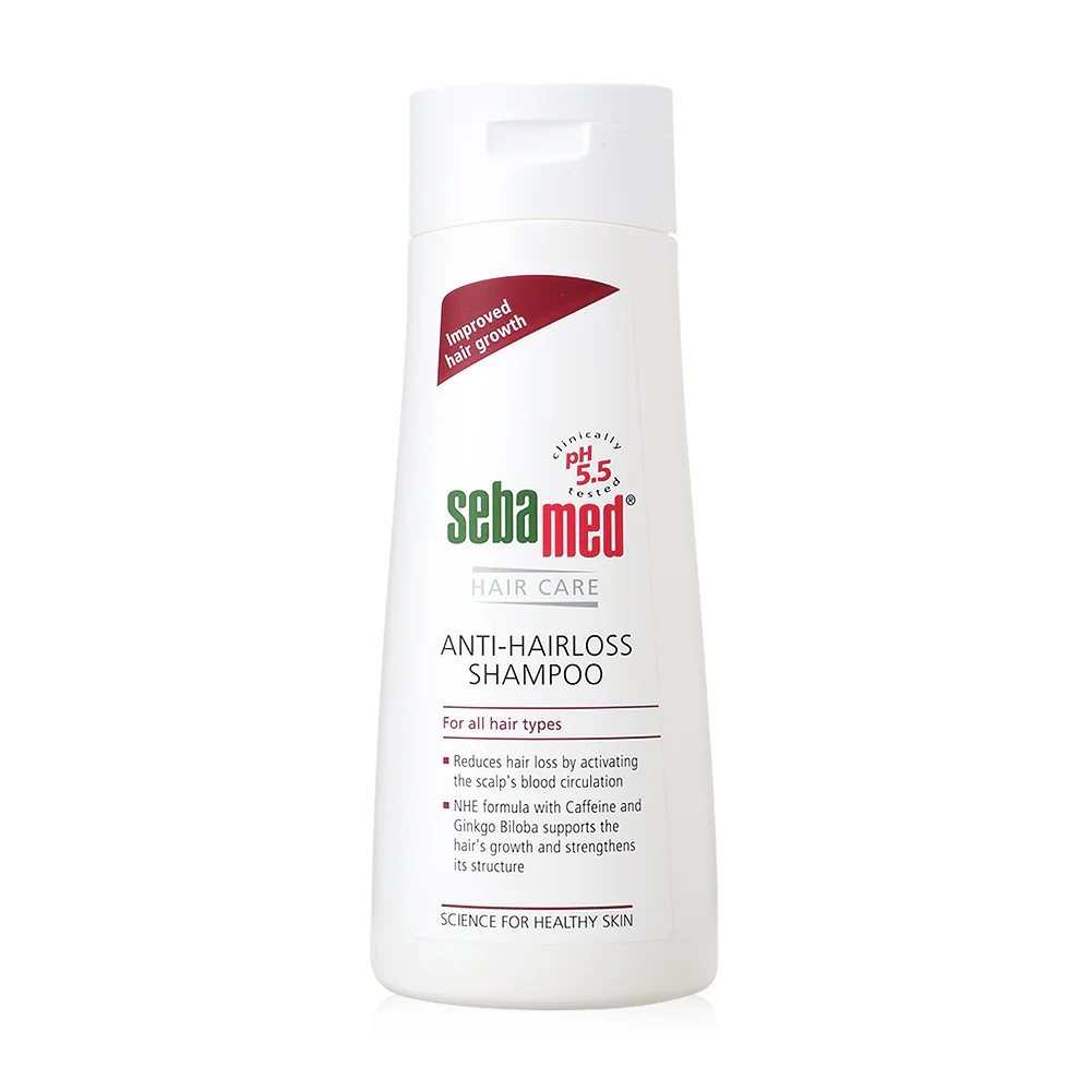 SEBAMED Anti-Hairloss Shampoo 200ml shampooFormula to prevent and reduce hair loss.too NHE Formula improves the efficiency of blood circulation up to 75% therefore bringing oxygen and nutrients to nourish the hair roots betterHelps control oiliness on the scalpwhile maintaining the balance of nature pH5.5 As a result, the hair roots and hair are strong and healthy.