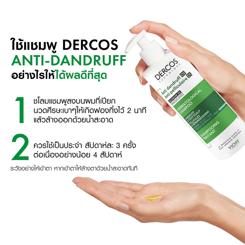 Vichy Dercos Anti-Dandruff Shampoo 390ml A shampoo that cleanses hair and scalp for those with dandruff problems, inspired by Microbiome Technology with 3 anti-dandruff actions using the science of the microbiome.