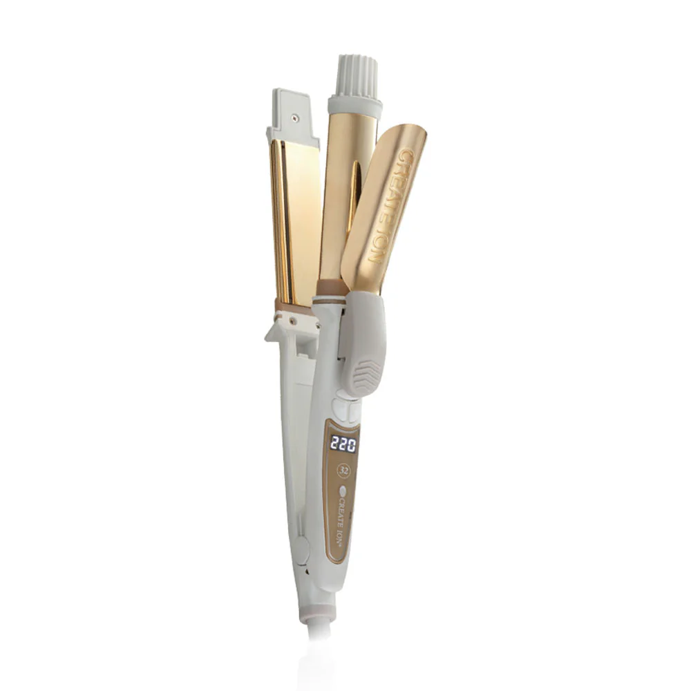Create Ion Thailand Grace 2 Way #White Beautiful curls, straightening bangs, finished in the same machine as a curling iron and straightener, white, with 24K gold core for smooth straightening and curling. Adjustable temperature 8 levels from 80-220 degrees Celsius combines Ion Solutions Technology to make hair shiny, bouncy, full of water, healthy.