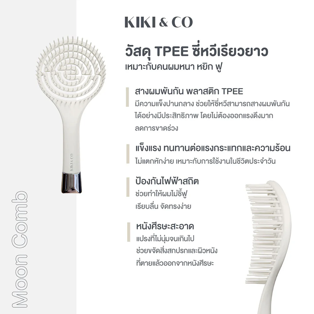 KIKI & CO Moon Comb 1pc The Moon Comb is designed to solve the problem of tangled hair directly. With a spring-like spiral shape, it is flexible and made of TPEE plastic, helping to easily detangle tangled hair without breaking or falling out, even with thick, frizzy, and coarse hair.