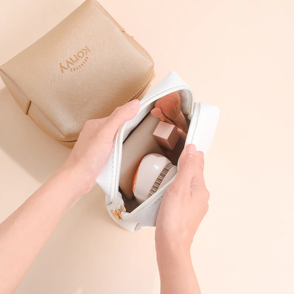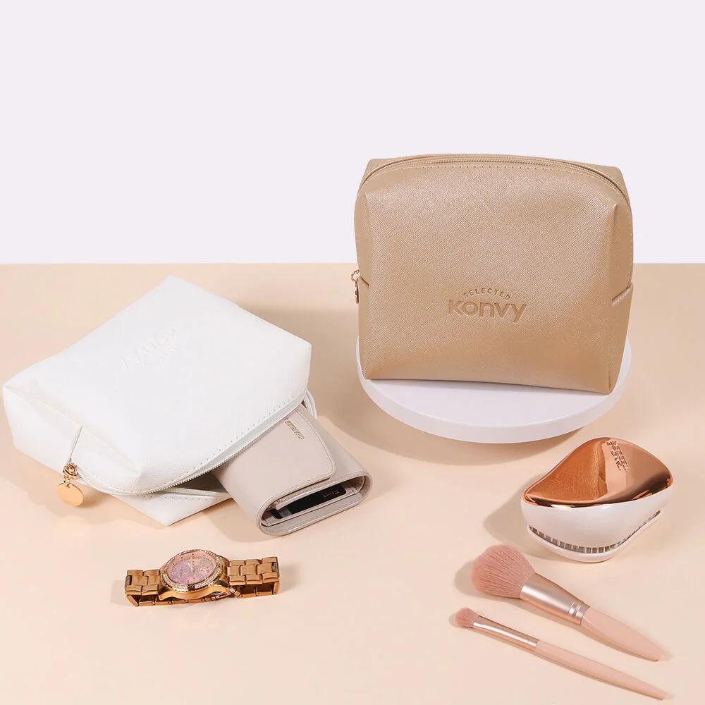 Konvy Quadrate Cosmetic Bag #GoldenCosmetic bag, gold color, simple and elegant design, made from high quality materials, meticulously sewn, can hold various items as desired.