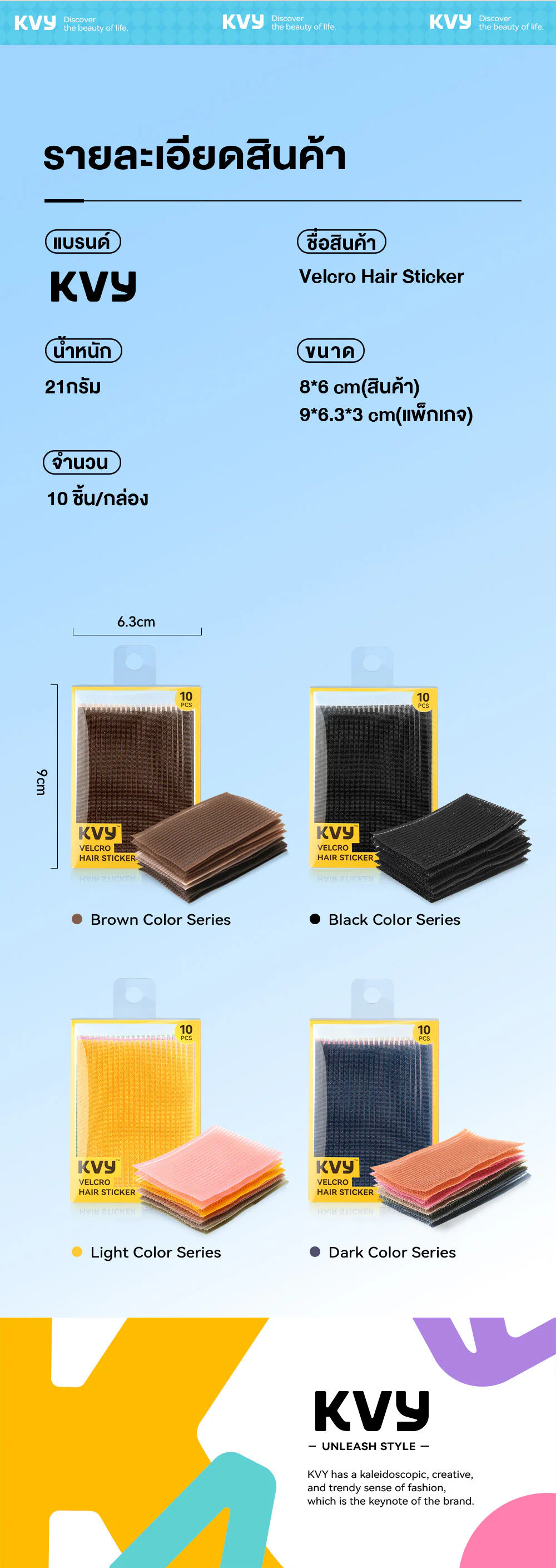 KVY Velcro Hair Sticker 10pcs #Dark Color Series10 pieces of dark-colored hair retaining patches help to hold excess hair well, without leaving marks on the hair, making it easy to put on makeup or wash your face.