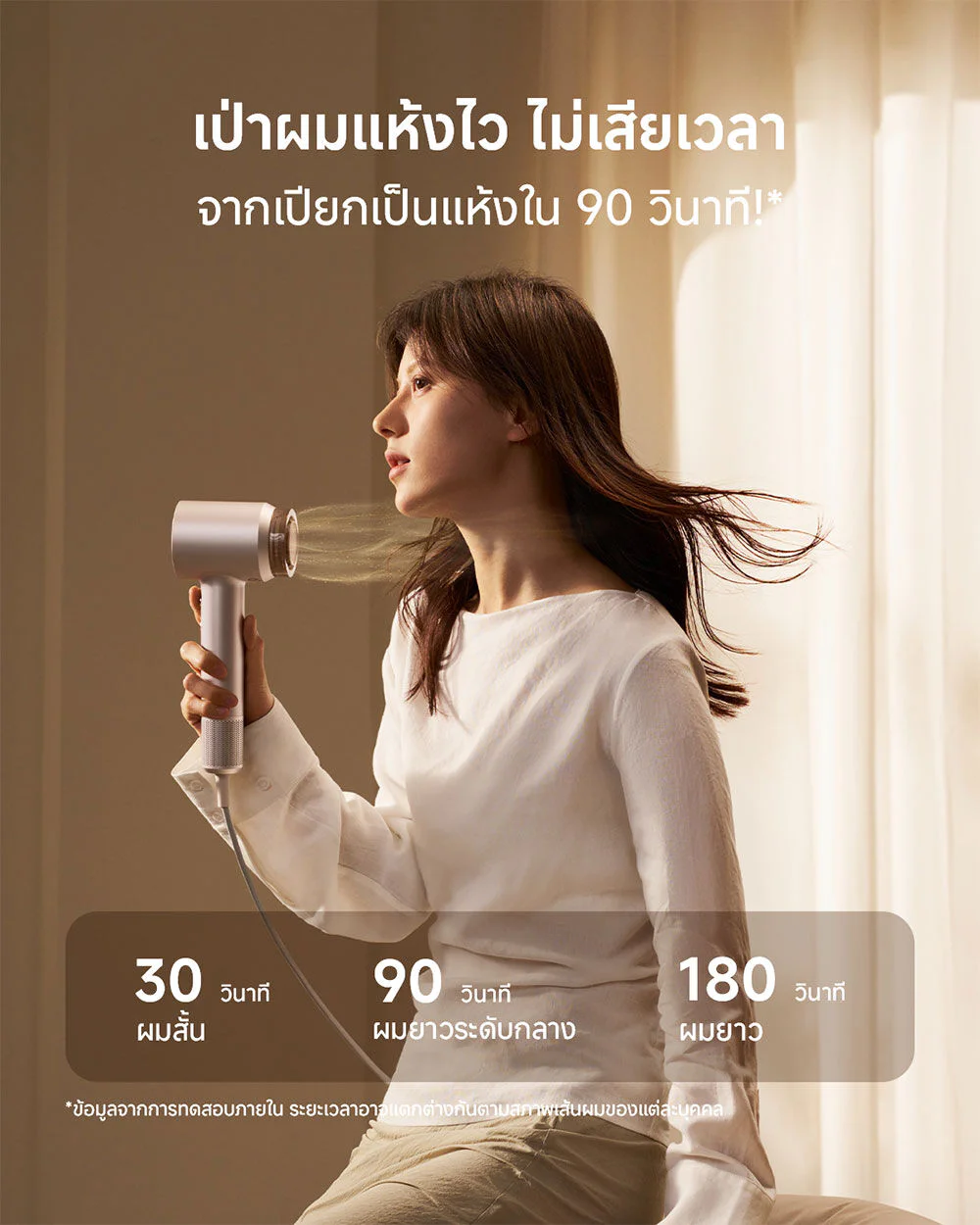 • Wind speed up to 23 m/s, dries hair quickly, doesn't take up time.