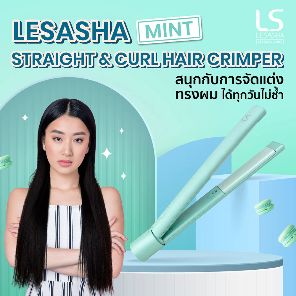 Lesasha Millennial Straight & Curl Hair Crimper #LS1555 multifunctional hair straightener Let you enjoy styling your hair every day uniquely, including classic straight hair. I have a wide variety of curls. and bend the ends to add volume with a rounded design that is easy even for beginners