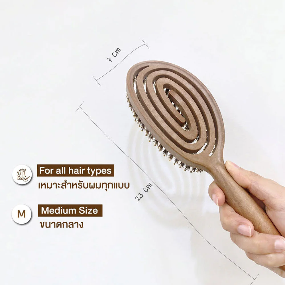 • Helps make hair naturally shiny because wild boar hair is similar to human hair, allowing the natural oils of human skin to adhere to the comb. This is the most natural way to nourish hair from root to tip.