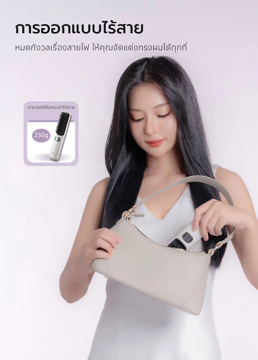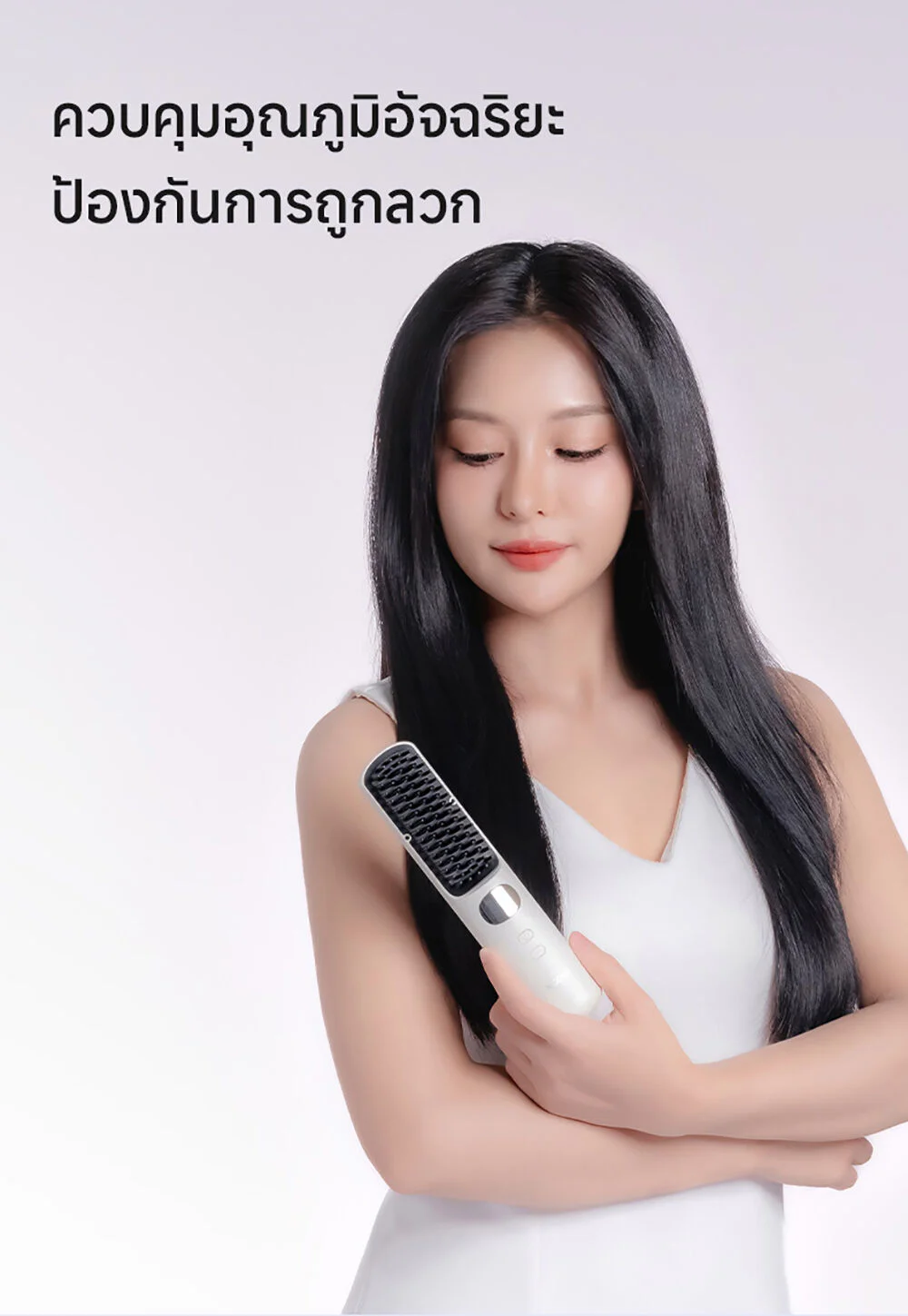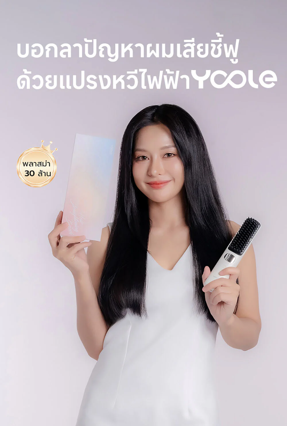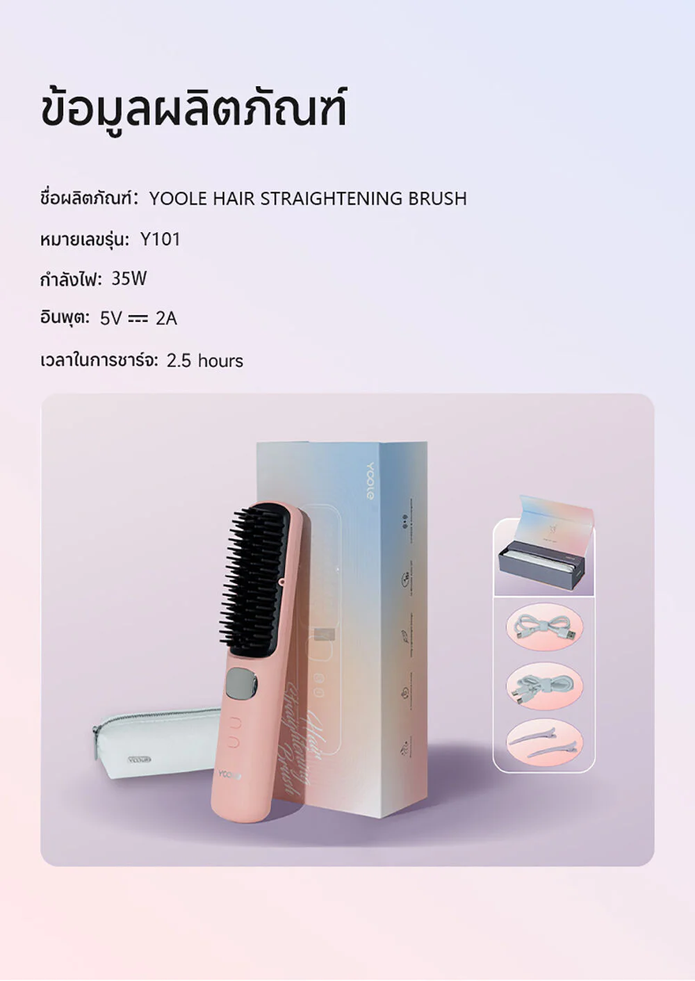 Yoole Hair Straightening Brush 1pc #White This white, cordless electric comb can heat up to 200 degrees and has 5 temperature settings. It comes with intelligent temperature control technology and has over 30 million ion charges, helping to prevent frizz, making hair shiny and straight. It also has a digital temperature display, making it portable and allowing you to change your look in many different styles.