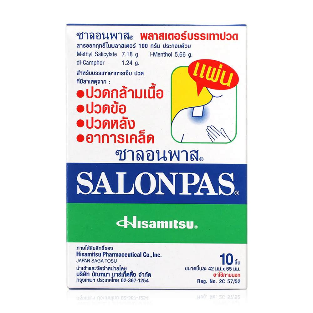 Set Salonpas Medicated Plaster 10pcs Salonpas Pain Relief Plaster For reducing pain from muscle fatigue, muscle pain, stiff shoulders, back pain, headache, toothache, sprain, bruise, stiffness and joint pain.