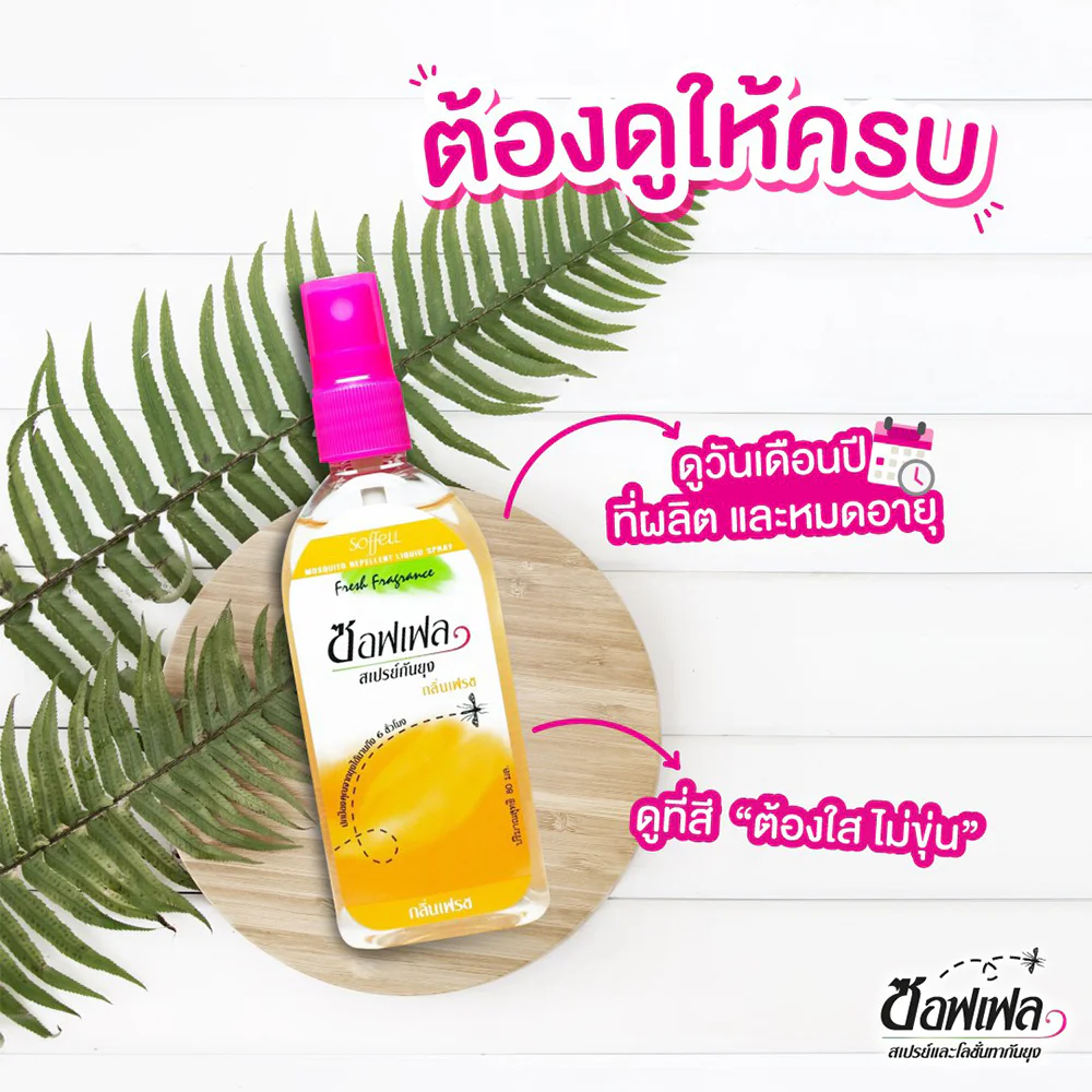 Soffell Spray Fresh 80mlEffectively repel mosquitoes with this fresh scented mosquito repellent spray. The spray head is easy to use and not sticky. It provides protection from mosquitoes for up to 6 hours. It is gentle on the skin and can be used every day.