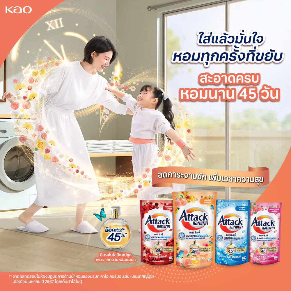 Attack Lively Blooming Concentrated Liquid 1300ml Concentrated liquid laundry detergent with MicroWash Technology, an innovative cleaning product with a concentrated enzyme formula that helps break down stubborn stains on clothes without wasting time soaking or scrubbing. With perfume capsule technology, it helps lock in long-lasting fragrance on clothes and reduces musty odors in clothes with every wash.