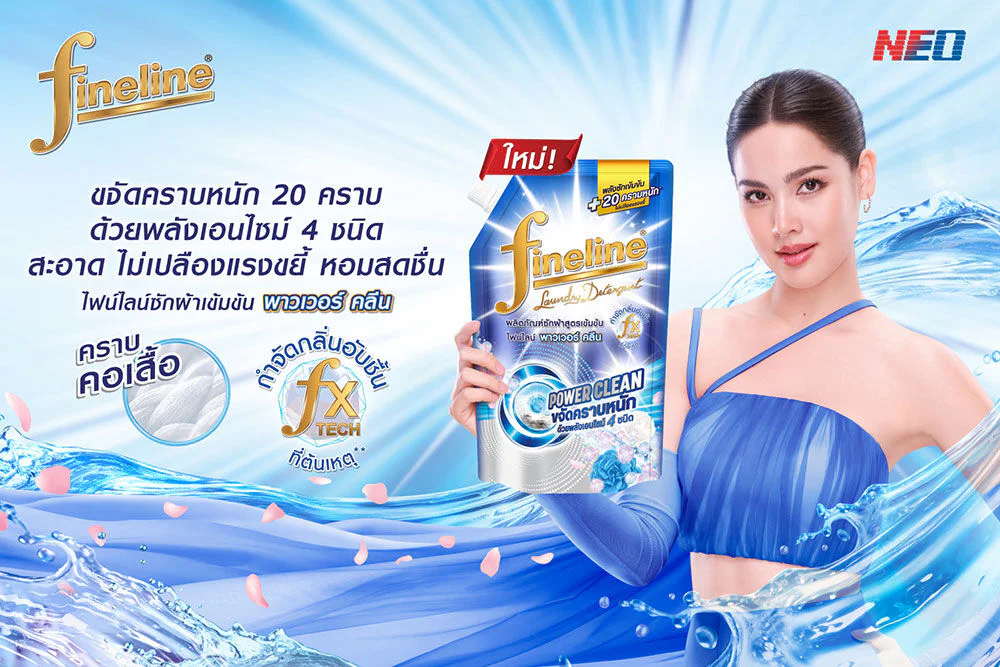 Fineline Concentrated Laundry Detergent Power Clean 580ml Concentrated laundry detergent formula cleans stains deep into the fabric fibers and helps break down heavy stains with the power of 4 types of enzymes. Removes over 20 everyday stains such as dog meat stains, collar sweat stains, boat noodle stains, blood stains, etc., leaving clothes clean, fragrant and fresh for a long time, and reducing musty odors from the first wash.