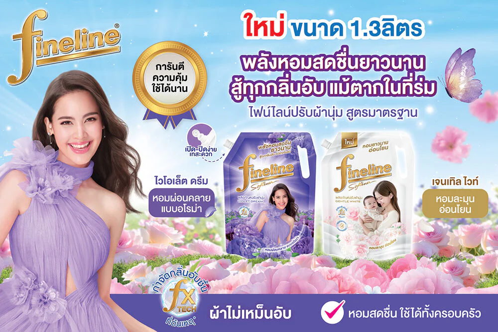 Fineline Fabric Softener Gentle White 1300mlConcentrated fabric softener with Gentle White scent helps reduce musty odors and maintains bright colors, making fabrics look new again. With Fineline's exclusive SOFTRA-3X ingredient, it helps make fabrics soft, fluffy, and pleasant to the touch every day. It also provides a long-lasting fresh scent on fabrics.