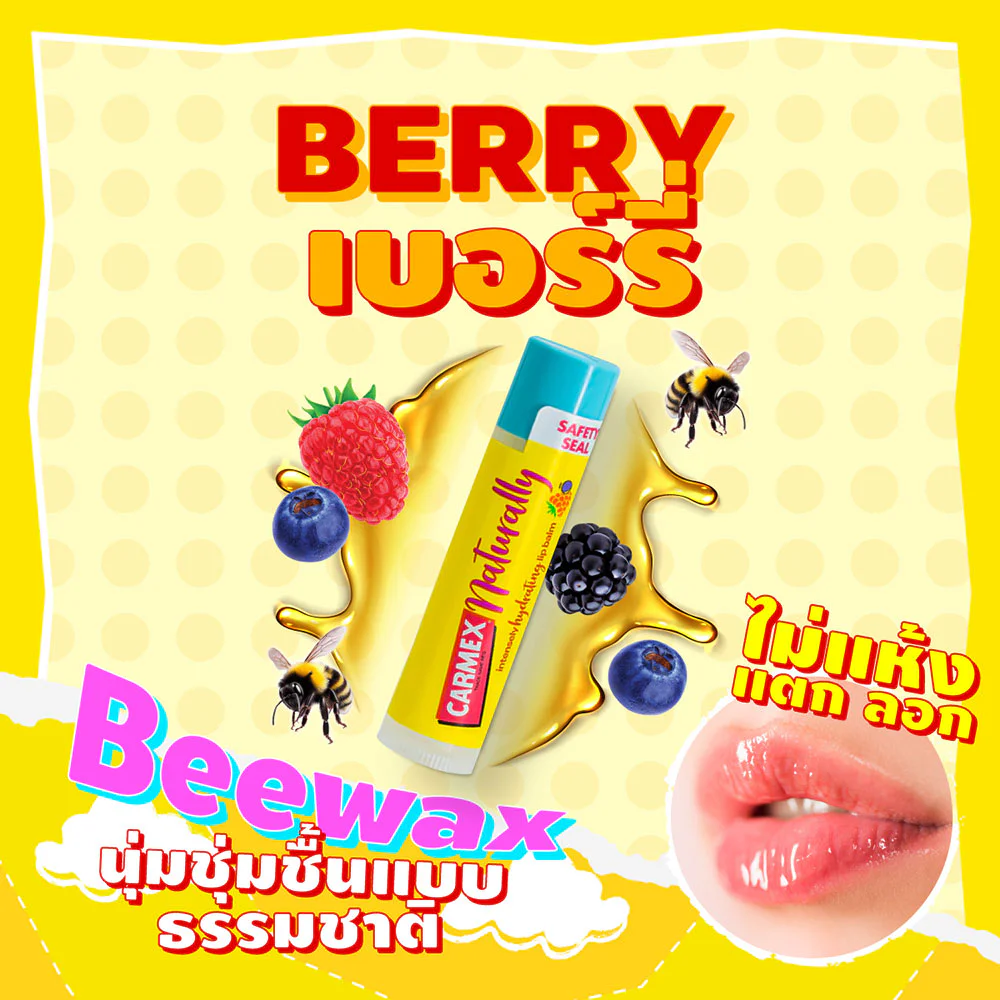 Carmex Naturally Berry Stick 4.25gLip balm stick, berry scent, helps restore moisture to the lips, making dry lips naturally moist and plump. Suitable for sensitive skin, can be used from 3 years old and up.