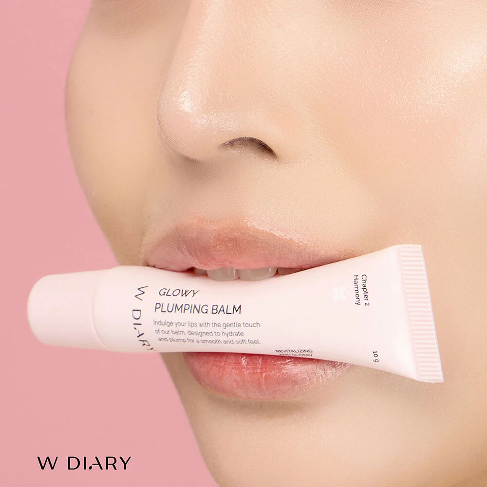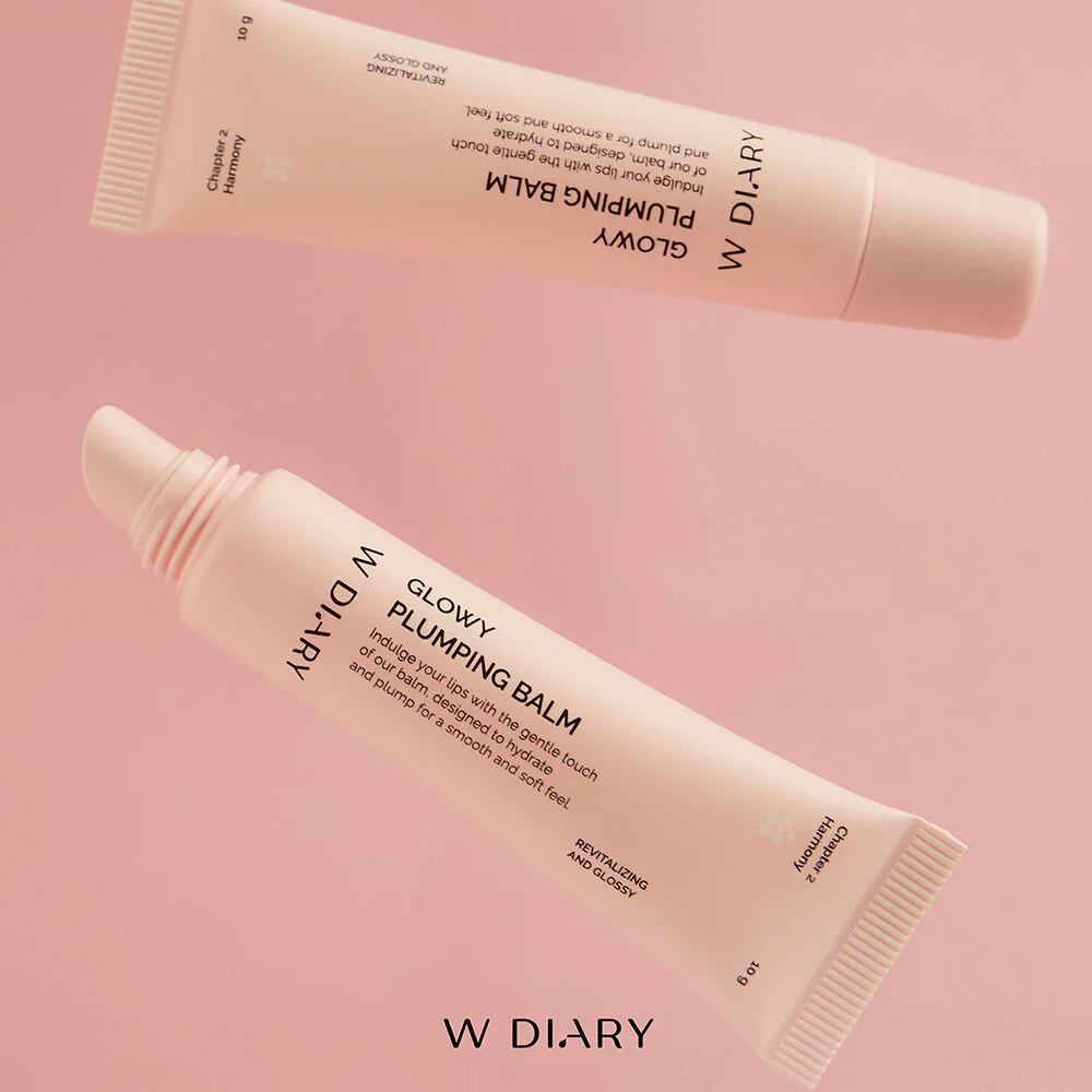 W diary Glowy Plumping Balm 10g This lip balm combines Oleo-eco-extraction technology from France with the power of nature to deliver a juicy, plump sensation and deeply nourish your lips. It restores dry, cracked lips to a smooth, glossy, and naturally healthy appearance, all in one step.